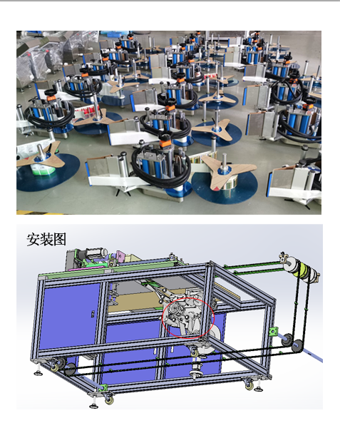 1. 安裝在打片機(jī)上,配套打片機(jī)使用的貼標(biāo)頭,在口罩成型前貼上海綿條,速度可與打片機(jī)匹配,產(chǎn)能相比成型后貼要高出很多,詳情如圖示: