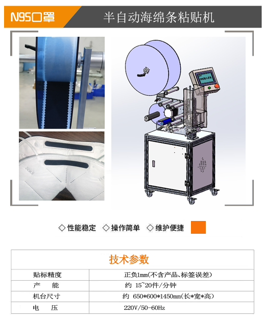 2. N95成型口罩海綿貼附機(jī),應(yīng)用于成型后立體的口罩打開后貼海綿條