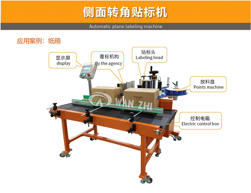 全自動(dòng)側(cè)面轉(zhuǎn)角貼標(biāo)機(jī)適用于包裝盒側(cè)面90度轉(zhuǎn)角貼封口標(biāo)或防偽標(biāo),轉(zhuǎn)角機(jī)構(gòu)可單獨(dú)停止,同時(shí)可適用于產(chǎn)品平面貼標(biāo);實(shí)現(xiàn)一般的上平面或轉(zhuǎn)角貼標(biāo);